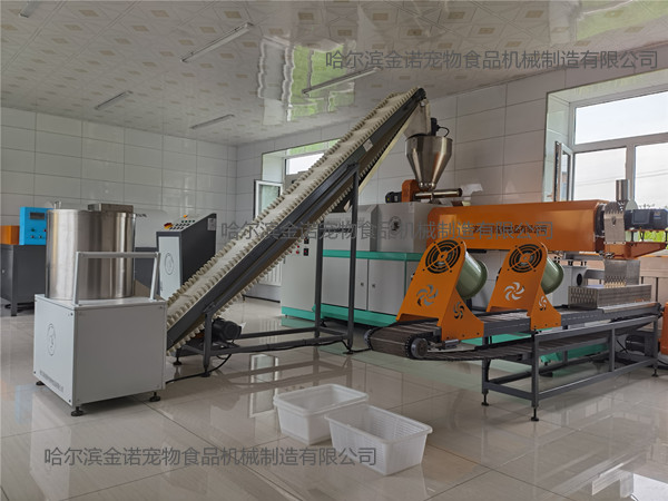 狗糧加工設備JNK200-T5M:1。JNK200-T5M型狗糧加工設備安裝方便、出廠已經(jīng)試機,狗糧機切刀采用直角切刀技術,調試簡單;2。狗糧設備的主軸和切刀小軸均可隨時注入耐高溫潤滑脂,延長狗糧機的軸承使用壽命;3。JNK200-T5M狗糧設備每小時生產狗糧顆粒200公斤。